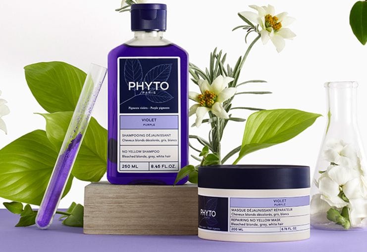 On vous recommande pour votre routine capillaire, la routine VIOLET de PHYTO qui comporte des ingrédients d’origine naturelle, les pigments violet du shampooing et du masque avec l’edelweiss qui a pour action de réparer la fibre des cheveux. Le beurre de karité répare et nourrit la fibre fragilisée et l’extraction de mauve blanche pour redonner deux fois plus de brillance à vos cheveux.