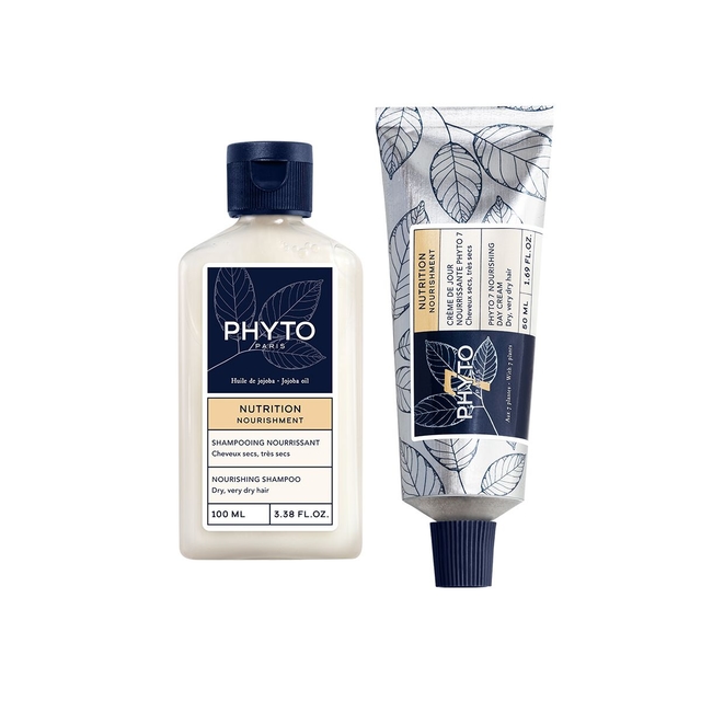 El Champú NUTRICIÓN que aporta suavidad y nutrición al cabello seco o muy seco. La Crema de Día PHYTO 7 que aporta la nutrición diaria que necesita el cabello seco.