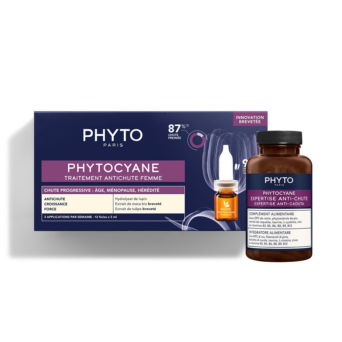 El ritual completo anticaída PHYTOCYANE para frenar la caída progresiva del cabello y estimular el crecimiento de un cabello más fuerte, más denso y de mejor calidad.
