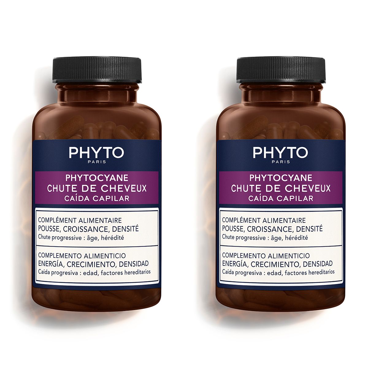 Frena la caída del cabello con el nuevo suplemento alimenticio anticaída PHYTOCYANE. Producto de la investigación anticaída de PHYTO, su potente fórmula con resultados clínicos excepcionales actúa contra las 3 causas biológicas responsables de la caída progresiva y severa.