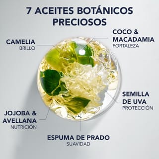Verdadero elixir de nutrición, este aceite de cuidado transforma tu cabello seco y dañado en una textura intensamente flexible y sedosa. Su textura ligera, con una fragancia adictiva y chispeante, envuelve y nutre el cabello sin apelmazarlo. Una fórmula de uso múltiple enriquecida con 7 aceites botánicos preciados: camelia, jojoba, avellana, coco, macadamia, pepita de uva y espuma de prado